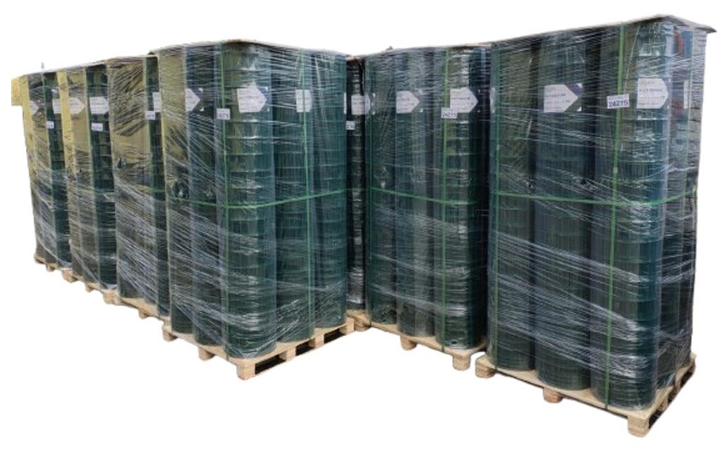 Rete elettrosaldata in filo d‘acciao [UNI 3598/54] zincato normale [UNI 10244-2] ricoperta in PVC verde RAL 6005 sinterizzato [UNI 10245-2]. La recinzione presenta una maglia rettangolare nella sezione centrale che permette una buona visibilità, mentre sull‘estremità inferiori le maglie sono quadre allo scopo di garantire una maggiore resistenza e il bloccaggio di eventuali animali.